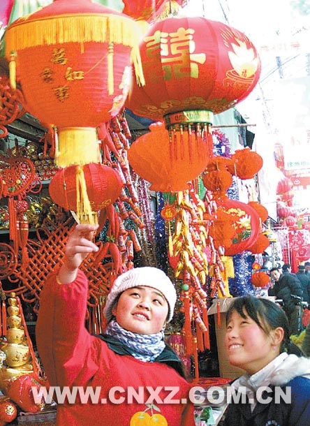 新年即將來臨,象征著喜慶吉祥的節(jié)日飾品在我市各大市場(chǎng)和商場(chǎng)開始熱銷。圖為市民在宣武市場(chǎng)選購(gòu)節(jié)日飾品。